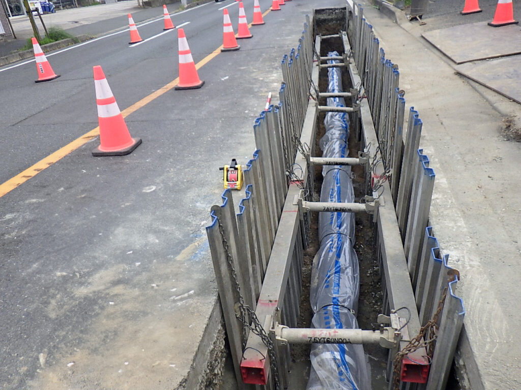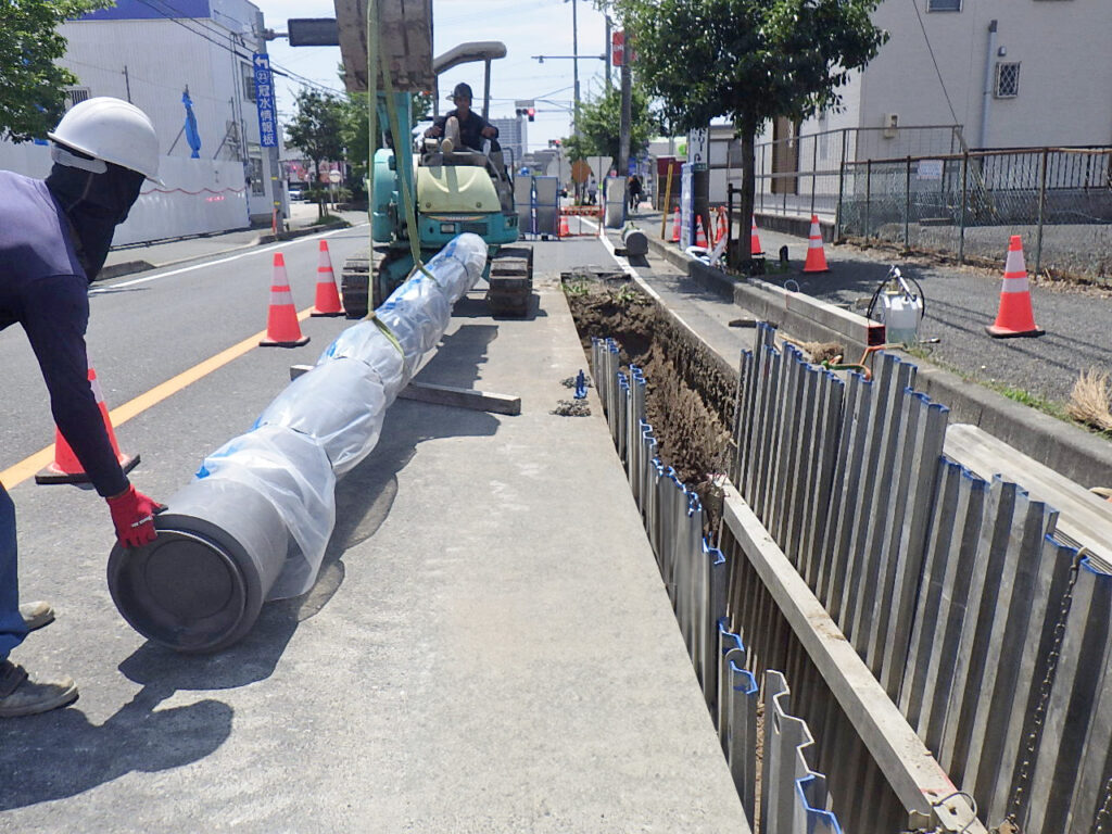 中村総業株式会社は、取水施設から取り入れた水を浄水場まで導く導水管、浄水場で処理された水を配水場まで送る送水管、そして配水場から給水区域まで水を供給する配水管など、水道網全体の新設と老朽化した管路の更新や耐震対策を行い、安心で安全な水の供給を確保します。